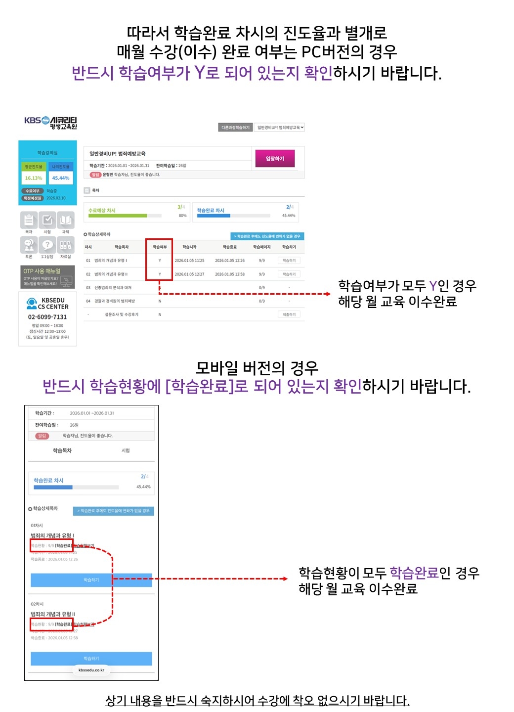 | [주요] [주요/필독] 26년도 환급(시험O)과정 해당월 이수 여부 확인 방법 안내 |